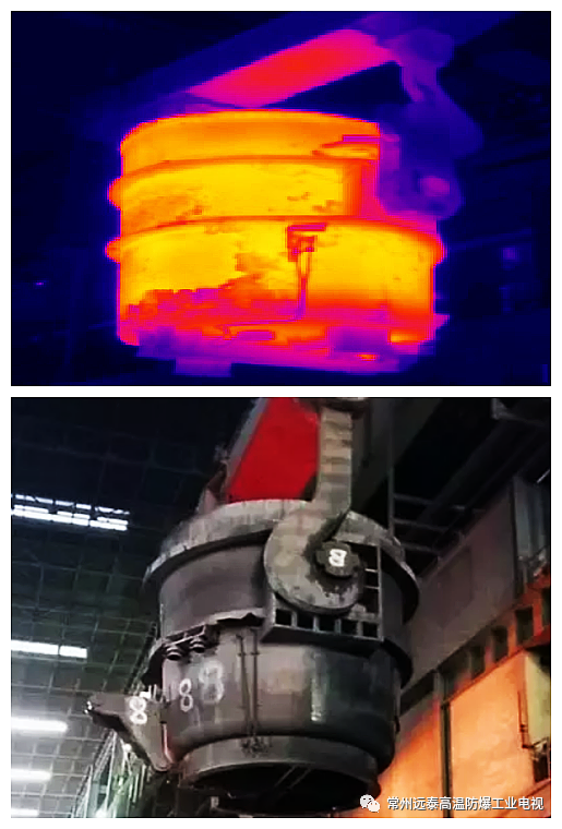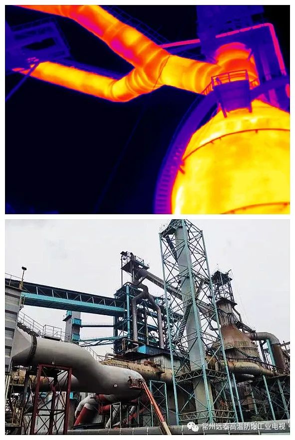 鋼包、中間包、電爐、轉(zhuǎn)爐、鐵水包、魚雷罐、熱風(fēng)系統(tǒng)、高爐本體、直吹管等等都需要耐火材料隔絕內(nèi)部高溫物質(zhì),防止泄漏。一旦內(nèi)部的耐材料被侵蝕或者脫落,可能造成液態(tài)熔融金屬泄漏、直吹管燒穿、爐皮燒穿等事故,造成重大經(jīng)濟(jì)損失。人工或者可見光設(shè)備無法直接觀察到耐材侵蝕或者脫落情況。采用紅外成像與檢測系統(tǒng),可以通過監(jiān)測整個(gè)設(shè)備外部溫度分布情況來評(píng)估耐材的狀態(tài),避免因耐材侵蝕脫落造成的高溫物質(zhì)的泄露,及時(shí)輸出報(bào)警信號(hào)。
