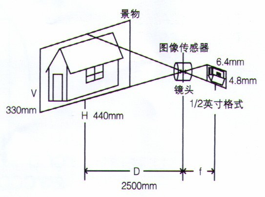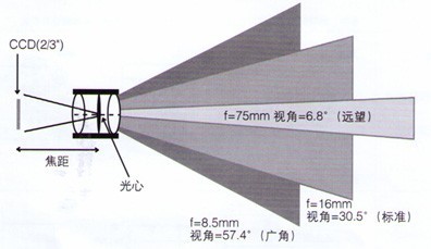 視角隨鏡頭焦距及攝像機CCD規(guī)格大小而變化。